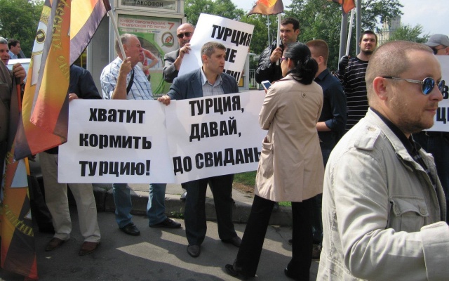 Напомним, что ещё в 2012 году соратники движения "РОДИНА - Конгресс русских общин" провели пикет у посольства Турции в Москве под лозунгом "Хватит кормить Турцию!".