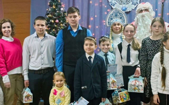 В каждом из них детям вручают сладкие новогодние подарки от Алексея Журавлева и поздравляют с наступающим праздником.