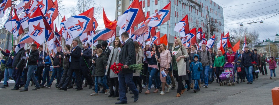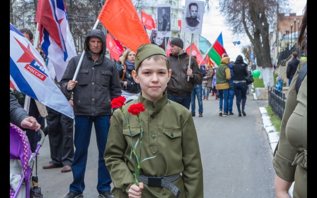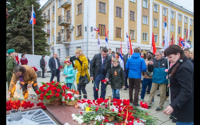 С песнями под гармошку, с флагами в руках и георгиевскими лентами на груди, «родинцы» прошли от центральной площади города к Вечному огню и возложили цветы у мемориала на берегу реки Вятки. Многие из них с портретами родственников – участников войны двигались в колонне «Бессмертного полка».