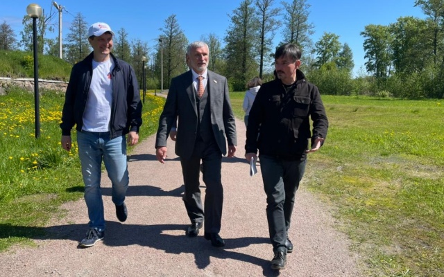 Также Алексей Журавлев посетил каменную крепость Корела в Приозерске. И, по традиции, возложил цветы у памятника "Павшим героям за Родину" при выезде из Каменногорска.