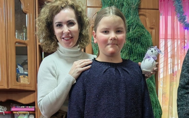Сестры подготовили для депутата ответный подарок – младшие девочки с помощью родителей смастерили милого снеговичка, а старшие собрали алмазную мозаику с помощниками Деда Мороза – гномами.
