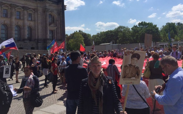 В берлинской акции 9 мая приняли участие председатель партии "РОДИНА", депутат Госдумы Алексей Журавлёв; член Бюро Президиума партии, руководитель Волгоградского регионального отделения "РОДИНЫ" и сопредседатель Социально-патриотического клуба "СТАЛИНГРАД" Алексей Рылеев; директор СПК "СТАЛИНГРАД", руководитель партийного интернет-проекта "Русский мир" Николай Ханин; лидер движения "Родина – Евразийский союз" (Молдавия) Игорь Тулянцев.
