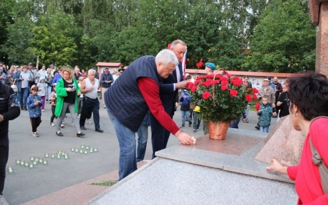Многолюдная акция "Свеча памяти" в память о погибших в годы Великой Отечественной войны в жилом районе Пашино прошла при поддержке Клуба избирателей Вячеслава Илюхина и новосибирского регионального отделения партии "РОДИНА".