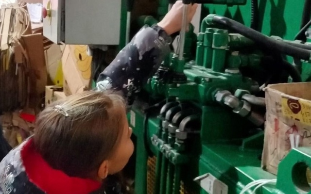 В процессе экскурсии подростки увидели полный производственный цикл от приема вторсырья, сортировки, прессования, обвязки и транспортировки готовой продукции на склад. Участники экскурсии сели на кресло водителя автотранспорта доставки вторсырья, а так же смогли попробовать себя в качестве работника на производственном прессе.