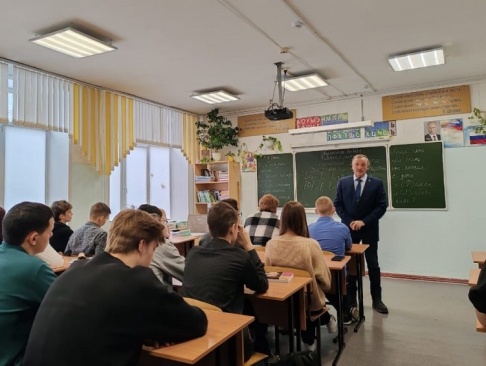 В разговоре со старшеклассниками ветеран боевых действий в Афганистане Леонид Рыбин рассказал о причинах и событиях афганской войны, о мужестве и стойкости наших воинов при выполнении интернационального долга. Поделился своими воспоминаниями о Герое России лейтенанте Сергее Амосове, чье имя носит школа.