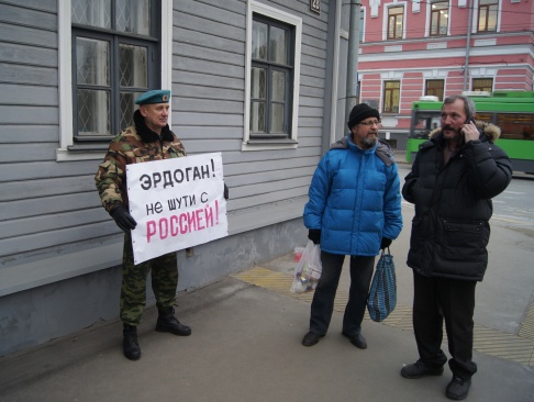 Региональное отделение партии "РОДИНА" в Татарстане организовало одиночный пикет у здания консульства Турции в городе Казань.