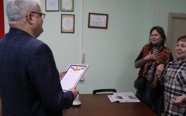 Заглянула на прием и делегация жильцов дома № 54 по ул. Народная. Жители пришли вручить депутату свою благодарность за помощь и содействие в ликвидации вредных выбросов от соседних промышленных предприятий.