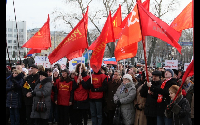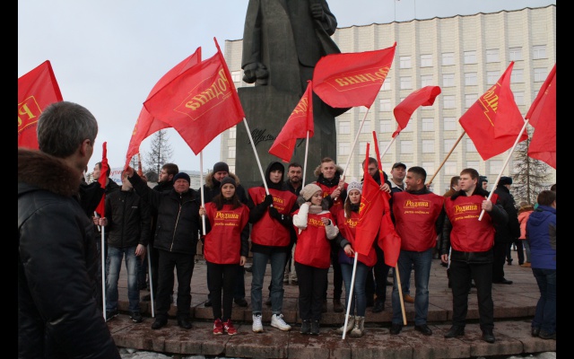 10 марта 2014 года на митинг в поддержку народа Крыма в Архангельске, по разным оценкам, пришли от двух до четырёх тысяч человек. Партия "РОДИНА" подняла около полутора десятков флагов, в общей же сложности на митинге присутствовали около трёх десятков сторонников партии.