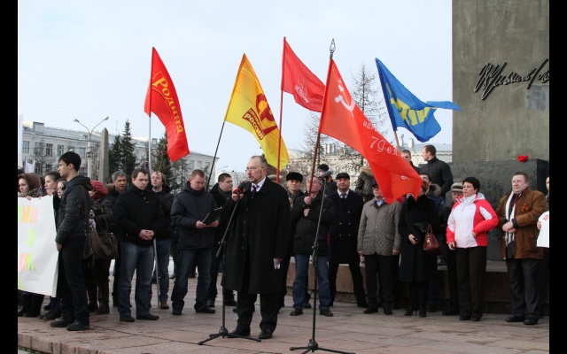 На митинге выступил лидер фракции "РОДИНА" в Архангельском областном Собрании депутатов Владимир Петров. Суть его выступления сводилась к тому, что нельзя допускать распространения фашизма и нацизма на территории Украина, а Украина и Россия - неотделимы. За сегодняшние поступки и слова не должны быть стыдно перед памятью отцов и дедов, резюмировал Петров.