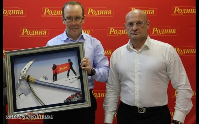 В прошлом году в торжественной обстановке председатель Совета самарского регионального отделения партии "РОДИНА" Сергей Мирошниченко вручил самарскому патриоту Леониду Мочалову изготовленный по специальному заказу памятный подарок и благодарственное письмо за продвижение имиджа партии "РОДИНА" при восхождении на Эльбрус, на вершине которого теперь развевается знамя социал-патриотов.