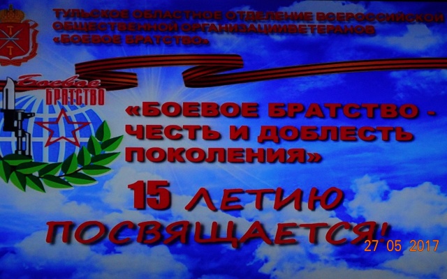 27 мая 2017 года Тульскому областному отделению общероссийской общественной организации ветеранов "Боевое братство" исполнилось 15 лет.