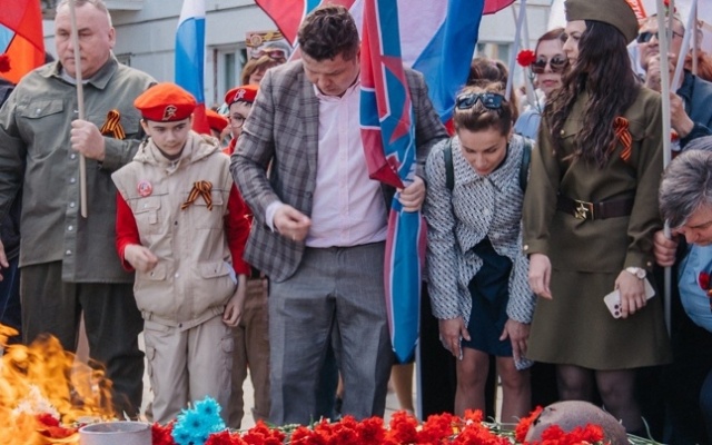 9 мая в Кирове представители регионального отделения партии "РОДИНА" приняли активное участие в торжественных мероприятиях, посвященных 77-й годовщине Победы в Великой Отечественной войне. Колонна родинцев, в которую влились сотни кировчан и гостей города, была самой массовой - с флагами в руках и георгиевскими лентами на груди и, конечно, с хорошими песнями! С песней "День Победы", которую знают и поют все, родинцы прошли от центральной площади к Вечному огню и возложили цветы у мемориала на берегу реки Вятки.